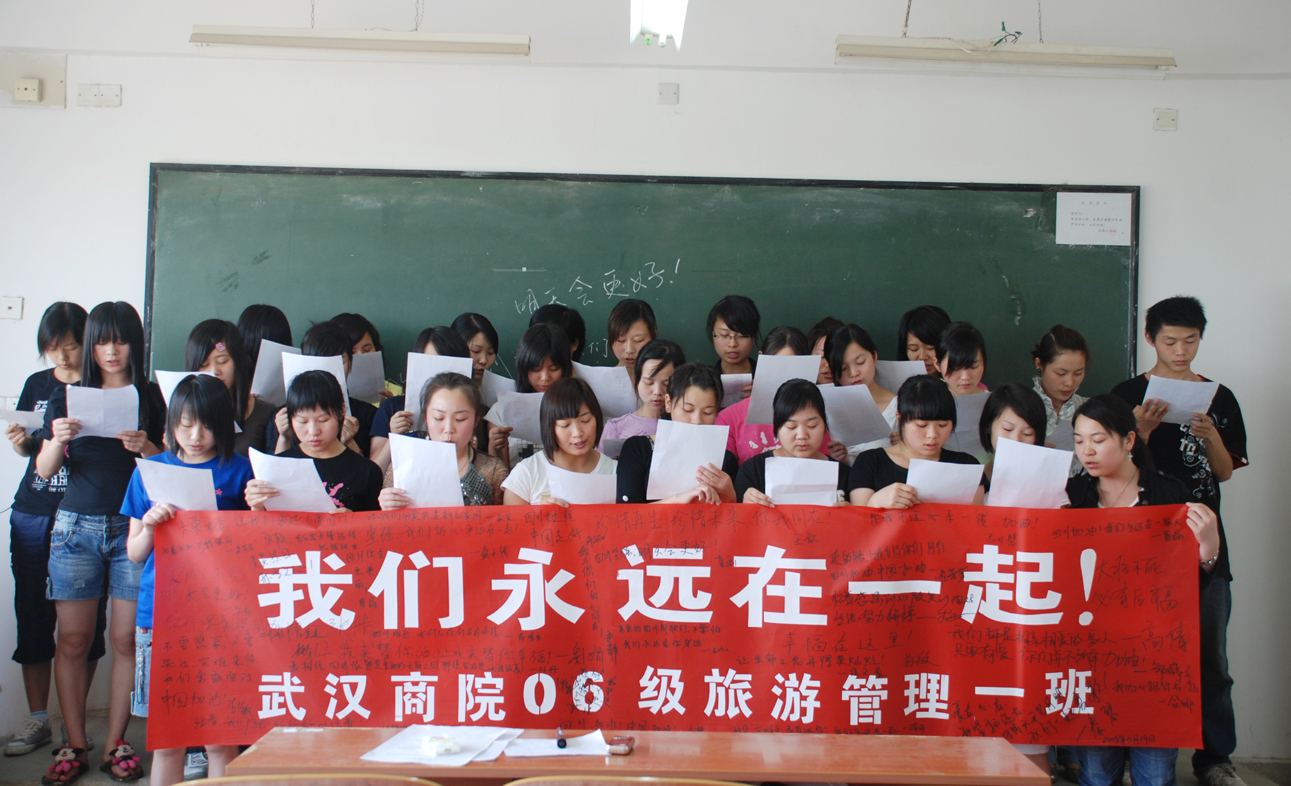 5月19日,一个特殊的日子,为了悼念那些在地震中遇难的同胞,为了更好地关爱我们身边四川籍的同学, 旅游系06级旅游管理(1)班同学选择了为那些已经离开的人默哀……