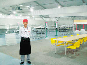 来自武汉的奥运厨师们被统一安排,住在一所公寓里。公寓离奥运村比较远,乘车需要1小时,厨师们每天凌晨4时30分起床,清晨6时开始工作,一直工作到下午16时。