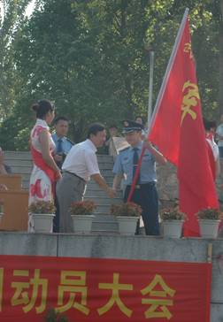 张元树院长向军训团授旗。