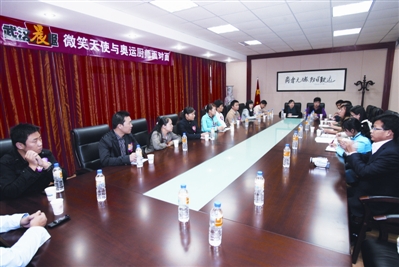 “微笑天使在行动”相继走进武汉市福利院、汉口医院、海尔工业园后,本月29日走进武汉商业服务学院,和奥运期间为运动明星服务过的该院师生面对面交流。
