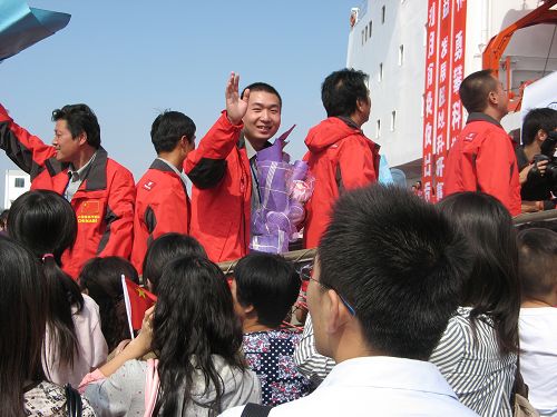 临别前,雷竞技官网3名南极科考队员非常激动,拿着校旗,与校领导一起在“雪龙”号前合影留念,表示一定不辜负全校师生的期望,圆满完成南极科考任务。