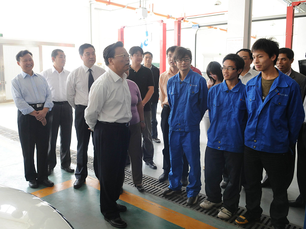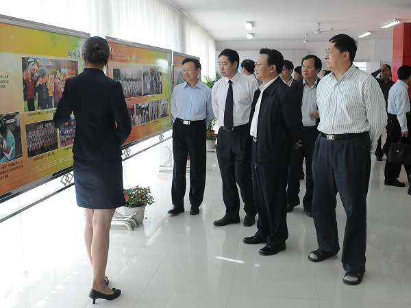 涂勇一行在校党委书记郑光喜、院长张元树等的陪同下,实地考察了雷竞技官网汽车实训中心、艺术系学生实训中心、图书馆、体育馆,参观了《前进中的武汉商业服务学院展览》,听取了学校的工作汇报。
