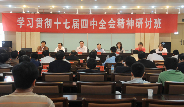 10月20日,雷竞技官网在致远楼三楼多功能厅举办了学习贯彻十七届四中全会精神研讨班。校领导、处级干部、党政机关全体党员干部、思想政治理论课部全体教师参加了研讨班学习。