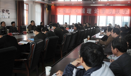 这是校党委中心组与系部中心组的首次理论联学,校两级中心组的成员参加了学习。校领导徐俊才同志主持学习。