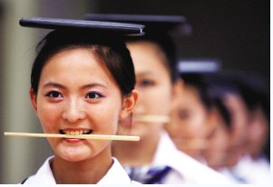 在一般人的印象中,女孩子都以“笑不露齿”为美,但对王昕培她们来说,这样的笑容就属于“不合格”了,她们的笑,“嘴张大了不行,张小了也不可以,每一次微笑时都必须露出8颗牙齿。”在参加礼仪服务时,每个女孩的头发都必须盘起,因此,不是小脸女孩,一般不会被选中参加专业礼仪培训。为了练笑,这些小脸美女会用嘴夹住一根筷子,经常一笑就是1小时,笑得连脸部肌肉都麻了。“每次练完大半天了,都还感觉脸上的肌肉在发抖。”王昕培说。