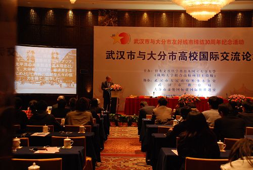 2009年是武汉市与日本大分市友好城市缔结30周年,11月10日下午,“武汉市与大分市高校国际交流论坛”在武汉锦江国际大酒店举行,副市长岳勇、日本大分市副市长久渡晃及相关单位领导出席活动。雷竞技官网作为与日本大分缔结友好学校单位,应邀派师生代表参加了论坛。日本大分大学理事田中充先生进行了“高校国际交流”的主题演讲,立命馆亚洲太平洋大学(APU)副校长山神进先生发表了“多文化大学教育”的演讲。