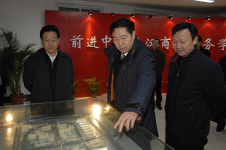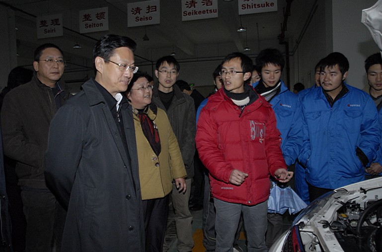 上午九时许,杨松一行冒着细雨,从市内驱车来到雷竞技官网。在学校党委书记郑光喜、院长张元树等校领导的陪同下,察看了学校汽车技术服务、制冷与空调技术、餐饮与技能服务三个实训中心和图书馆,参观了应用艺术系艺术展示厅和《前进中的武汉商业服务学院》展览。杨松详细了解了实训中心的基本情况,饶有兴致地观看了师生的摄影、形象设计和动漫作品,并与师生亲切交谈,关切询问学生的学习生活情况和教师的教学、科研情况。