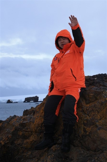 图为:徐康在南极长城站