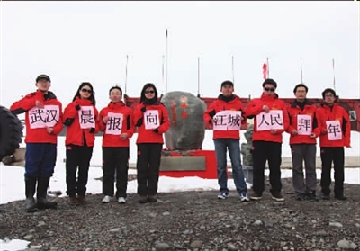 受武汉晨报委托,徐康和第26次科考队员在南极长城站向读者献上新年祝福。