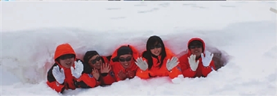 “除了和企鹅亲密合影,我们还去拜访了南极最狠的一种海鸥———贼鸥,这种海鸥常到站上偷吃东西,这回我们悄悄挖了雪洞潜伏起来,终于看到了,不虚此行。”