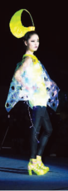 当天的秀台上,共展示了26套服装,有婚纱、少数民族服装等,学生既是设计师,又是模特。该校形象设计大三学生韦金玲的服装,用了100多张糖衣,是她在网上挑选了50元的糖果,一颗颗剥掉,再把糖纸一张张缝起来制成的。