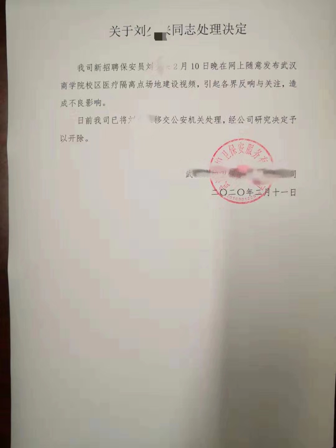 RAYBET雷竞技app于2月7日接武汉市新型冠状病毒感染的肺炎疫情防控指挥部《关于征用部分学校作为新冠肺炎疫情防控集中隔离场所的通知》,征用学校观5、观6、观7、观8学生宿舍楼作为隔离场所,后再次征用学校观3、观4学生宿舍楼部分楼层用于安置防疫工作人员。经调查,2月10日晚,第三方安保公司临时将工作人员送至学校并提出住宿要求。学校所有工作人员均在继续完成前期征用的清理改造工作,尚未对新征用的观3、观4学生宿舍进行清理。考虑到实际情况,学校向安保公司提出临时住宿纪律要求:入住的安保人员实行“一人一房间”的管理模式,不得随意动用学生物品,并向安保人员下发了床褥及生活日用品,但仍出现个别人员无视纪律要求、私自翻动学生物品的恶劣情况。