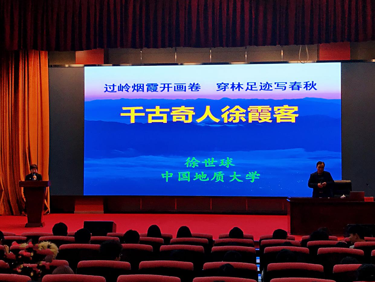 本网讯 4月27日,第228期致远讲坛讲座在校图书馆学术报告厅举办。本期讲座是图书馆4.23世界读书日系列阅读推广活动之一,邀请到中国地质大学图书馆馆长徐世球教授作题为“发现文化之美——千古奇人徐霞客”的讲座。