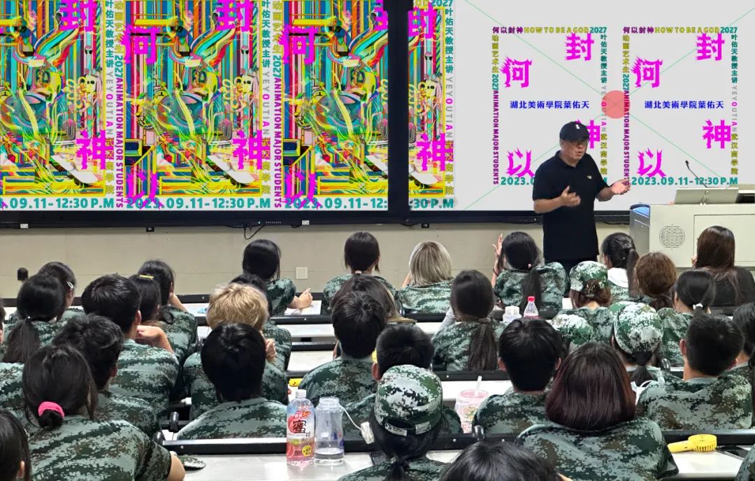 9月11日,艺术学院迎来了一场智慧的饕餮。湖北美术学院教授叶佑天应邀为艺术学院2023级新生作题为“大学四年,何以封神?”的学术讲座。本次讲座由艺术学院副院长周宇主持,150余名新生共同聆听了本次讲座。