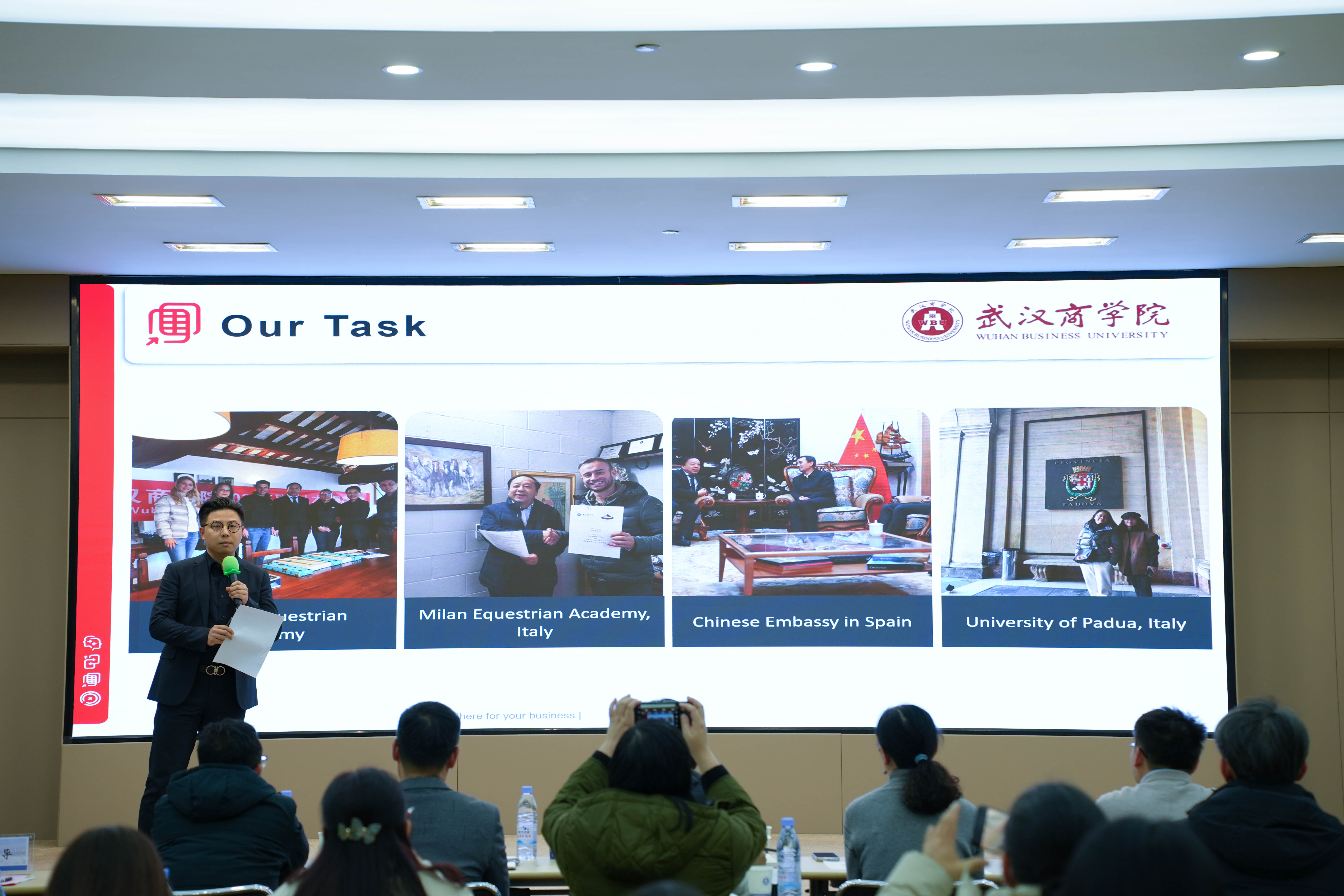 “Showcasing Wuhan Business University at international horse industry community!”作为第一个发言人,来自体育学院·国际马术学院的易仁帅代表澳大利亚出访团在交流演讲中介绍了在澳大利亚的行程并提到为提升雷竞技官网教育质量应加大对学生教育资金支持,挖掘雷竞技官网潜在优势学科,为建设一流大学提供强劲动力。其中,赴瑞士交流团代表发言人旅游管理学院胡潇在演讲中着重提到旅游管理专业的出访心得,从专业课程设置,学生就业及未来发展,实习实训管理,文化交流与互鉴,四个方面为雷竞技官网旅游管理专业提出建议,为雷竞技官网专业学科发展和培育旅游高素质人才聚力。