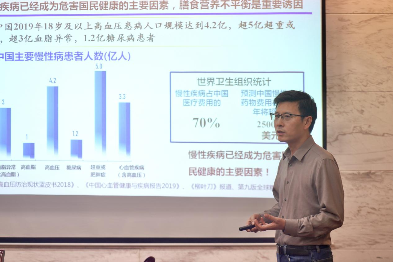 邓乾春一直致力于油料作物的高效加工与营养学研究,在油料基营养健康产品的研发与应用领域取得了显著成果。会上,他首先介绍了当前中国慢性疾病高发的严峻形势,指出慢性疾病的发生与膳食行为有关,其中肥胖与脂质代谢障碍与膳食中油脂的种类、加工方式以及摄取量密切相关。因此,如何科学地选择油料作物,优化其加工工艺,挖掘利用其中的活性功能成分,对保证消费者营养健康,显得尤为重要。