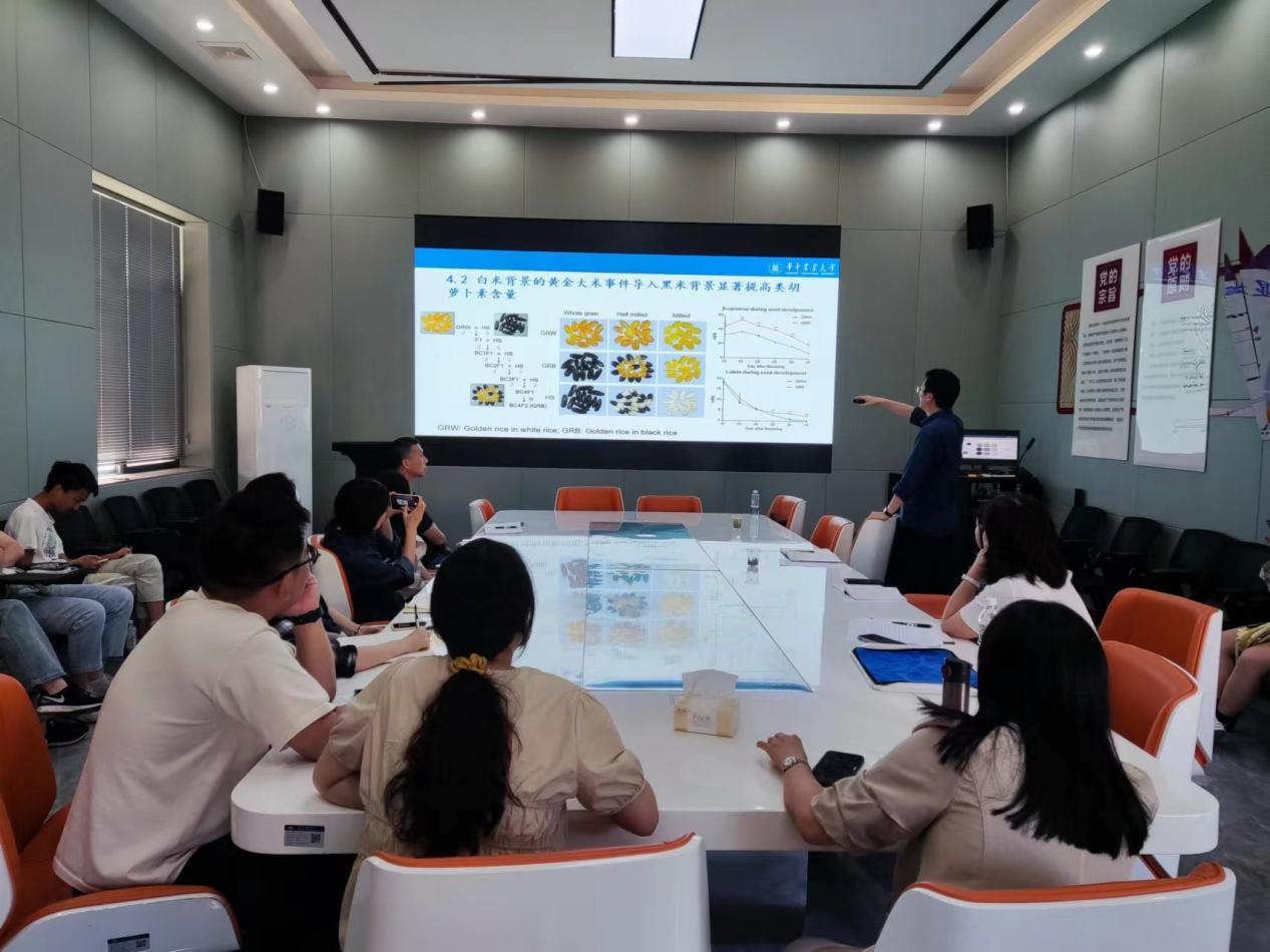 本网讯 5月9日下午,华中农业大学生命科技学院教授陈浩应邀为食品科技学院专任教师和学生代表作了一场题为《“黑米主食化”的理论与实践》的学术报告,报告在食品科技学院205会议室举行,由食品科技学院副院长眭红卫主持。