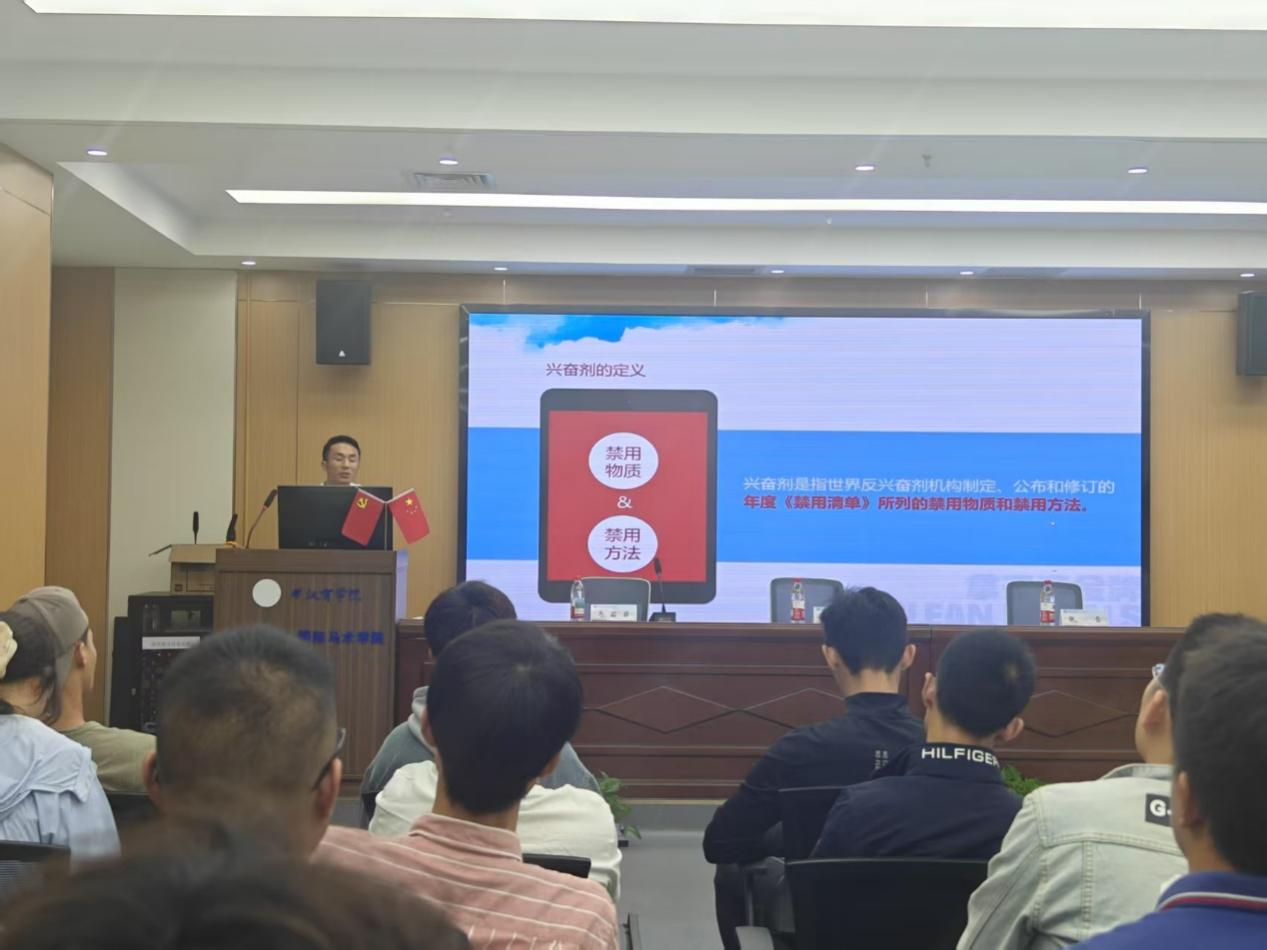 本网讯 4月21日,在体育学院会议室大学举办了一场以“纯洁体育,从我做起——对兴奋剂说不!”为主题的反兴奋剂培训活动。此次培训旨在进一步提升学院师生对反兴奋剂工作的认识,为学校马术队备战全运会,深入贯彻落实中华体育精神,为体育竞赛的公平公正奠定坚实基础。