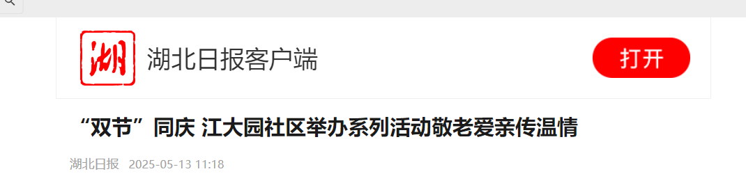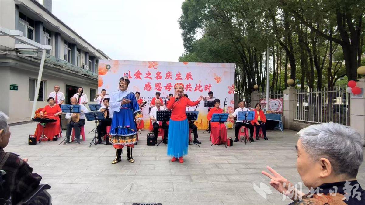 湖北日报讯(通讯员余秋荣)5月11日,武汉经开区沌阳街道江大园社区联合社区居家养老服务中心、社区老年学校、颐德养老院举办“以爱之名庆生辰 感恩母爱共此时”活动,庆祝母亲节和护士节的到来,弘扬中华民族传统美德,营造尊老、爱老、敬老的良好氛围,为老年人带来了一场充满温情与欢乐的节日盛宴。