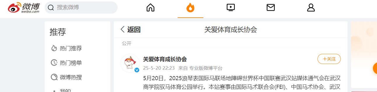 2025浪琴表国际马联场地障碍世界杯中国联赛武汉站为2025浪琴表国际马联场地障碍世界杯中国联赛第二站,将在5月30日至6月2日举行。