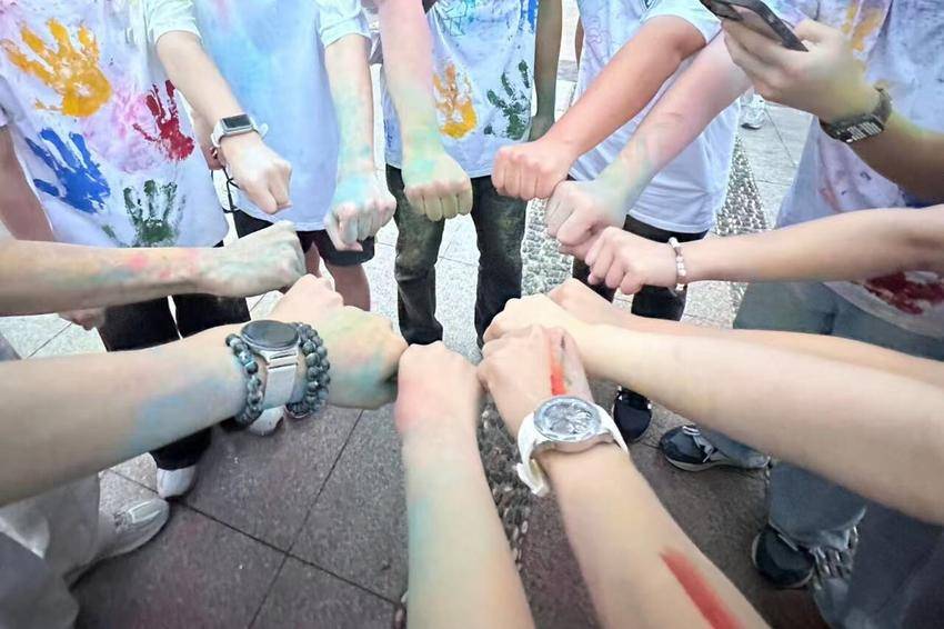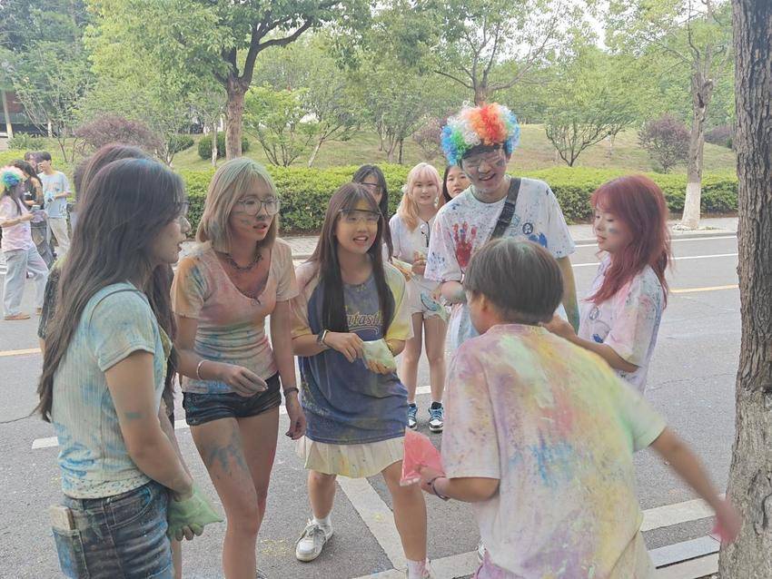 彩虹跑途中,彩虹NPC惊喜现身。同学们与NPC积极互动,完成任务后获得“彩虹锦囊”,为寻宝之旅助力。彩粉在空中飞扬,同学们的身上、脸上都沾满了五彩斑斓的色彩,欢声笑语回荡在校园的每一个角落。大家尽情享受着这场色彩与运动交织的盛宴,展现出青春的活力与激情。