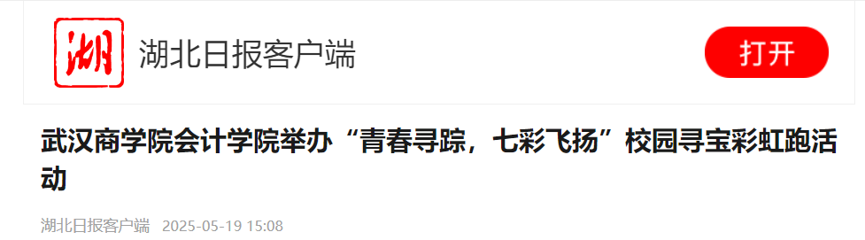湖北日报客户端讯(通讯员张苏)走出寝室,走进操场,增添校园愉悦气氛。5月16日晚,RAYBET雷竞技app会计学院举办“青春寻踪,七彩飞扬”校园寻宝彩虹跑活动,来自各学院500余名同学参与此次活动,为校园增添了一抹绚丽色彩。