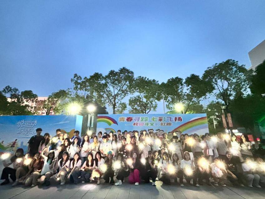 下午6点,彩虹跑正式启动。同学们沿着指定线路奔跑,每经过一个彩虹站点,都仿佛踏入一个色彩斑斓的梦幻世界。站点设置了趣味小游戏,同学们积极参与,在游戏中挥洒汗水、收获欢乐,同时也获取了宝藏提示线索。