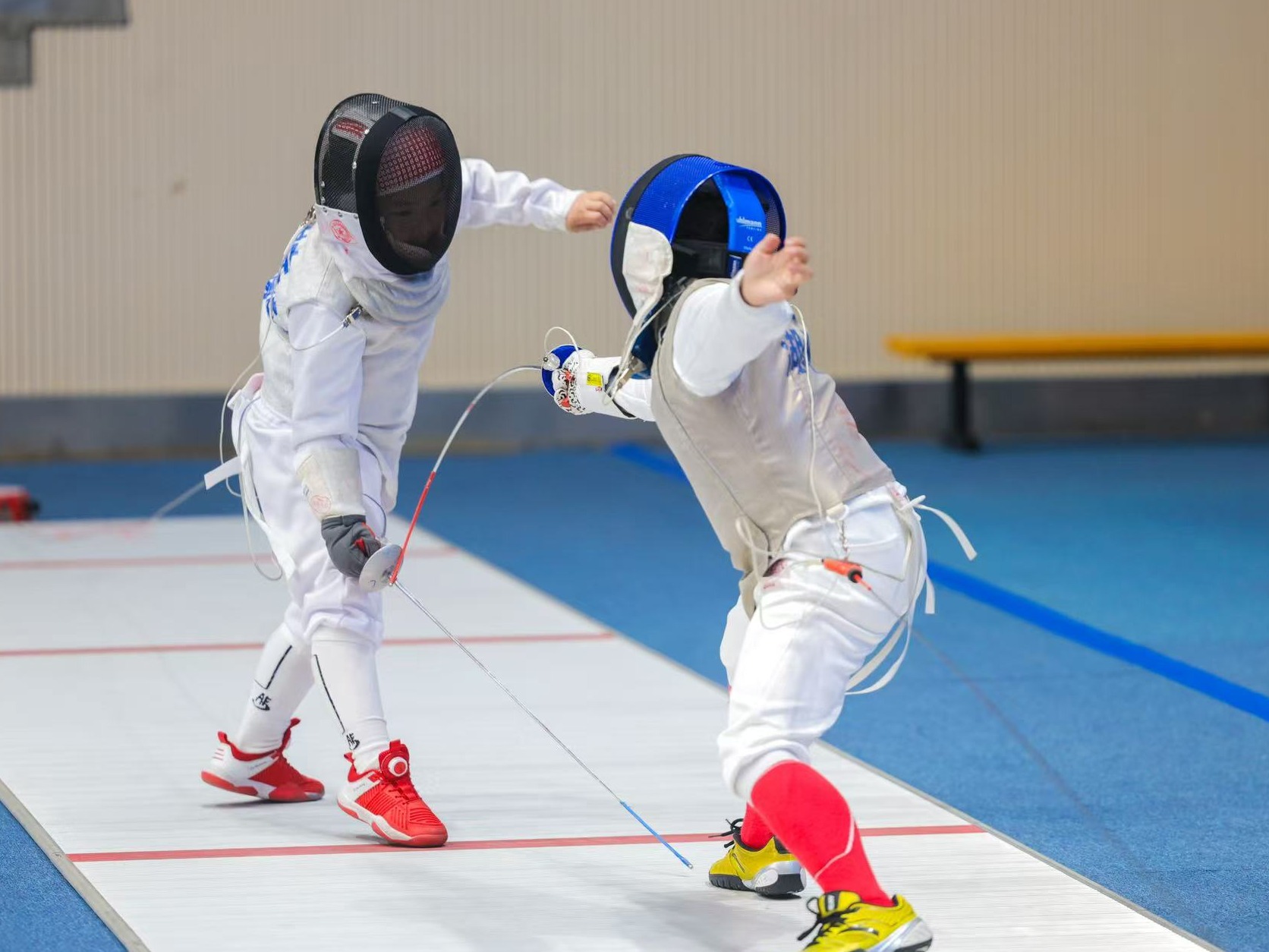 赛场内几十条剑道依次铺开,身着白色比赛服,头戴头盔的剑手们激烈攻守,剑锋相交,发出清脆的声音。他们的精准刺击、敏捷步法不时引来欢呼与掌声。