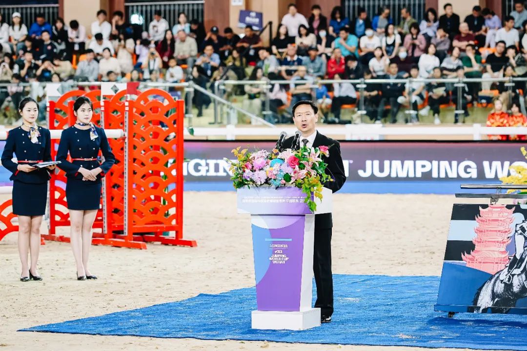 2025浪琴表国际马联场地障碍世界杯中国联赛武汉站由国际马术联合会(FEI)、中国马术协会、RAYBET雷竞技app、武汉市体育局主办,为国际马联二星赛事。6月1日开幕式上,武汉市人民政府副市长孟晖出席,并宣布比赛正式开幕。