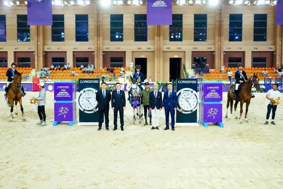 颁奖嘉宾左起:北京市马术运动协会主席 刘诗来先生;浪琴表中国区副总裁 解琦先生;国际马联副主席、国际马联第八区主席黄启芳先生;中国马术协会秘书长 钟国伟先生