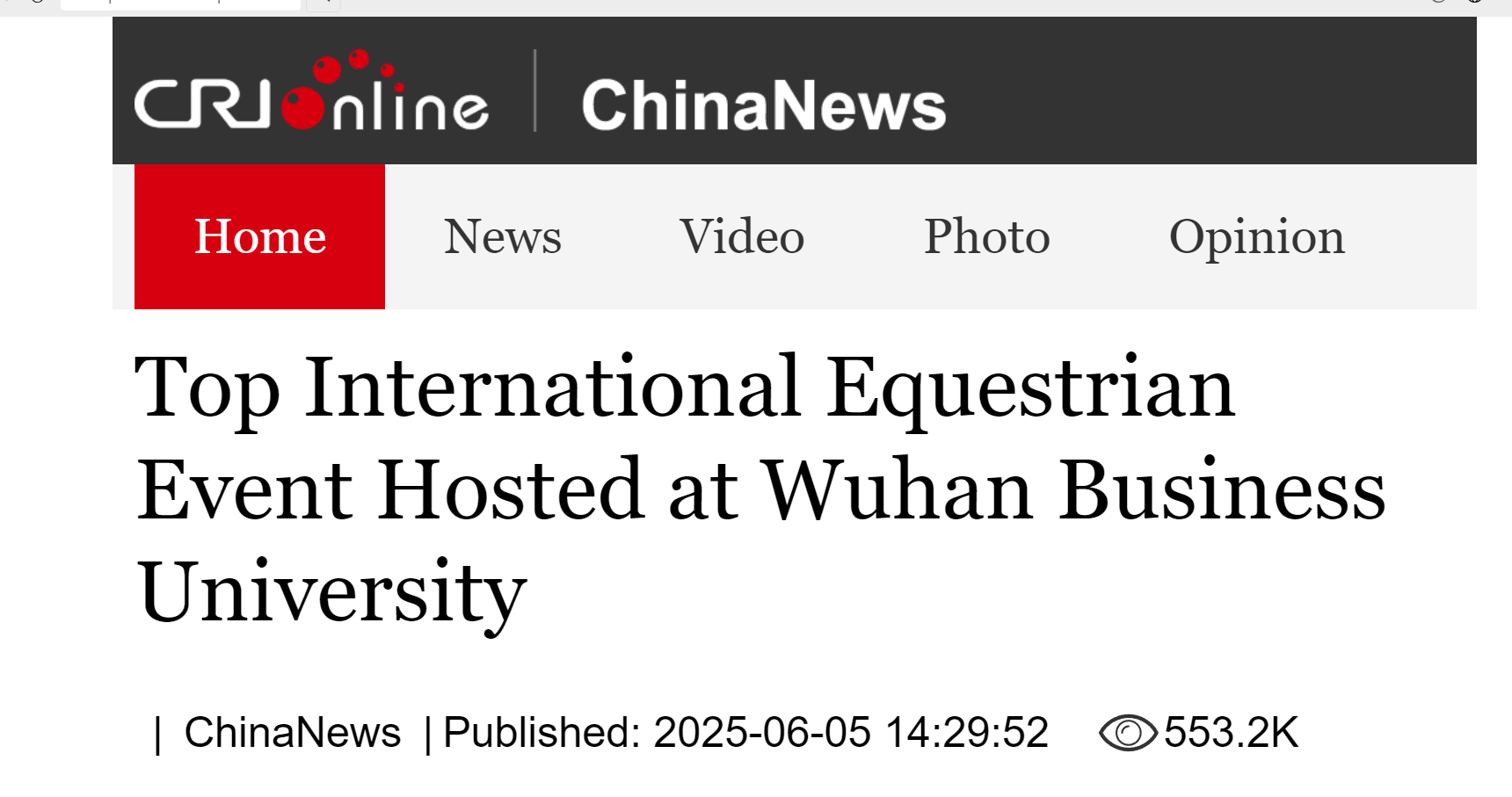 From May 30 to June 2, the 2025 Longines FEI Jumping World Cup™ – China League Wuhan was held at Wuhan Business University. The event was jointly organized by the International Equestrian Federation (FEI), the Chinese Equestrian Association, Wuhan Business University, and the Wuhan Municipal Sports Bureau.