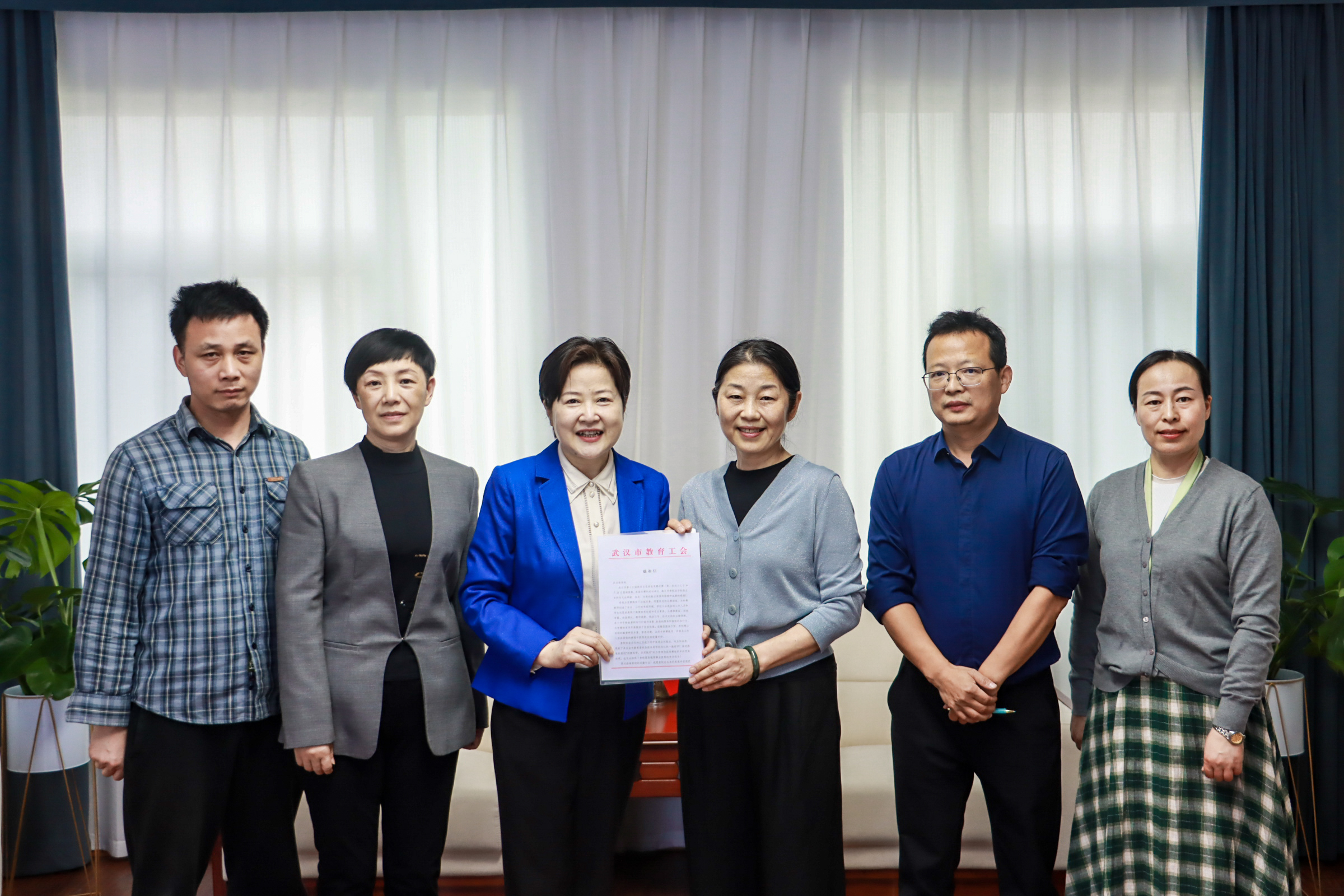 武汉市教育工会主席许芬为雷竞技官网送来感谢信。李林笑摄