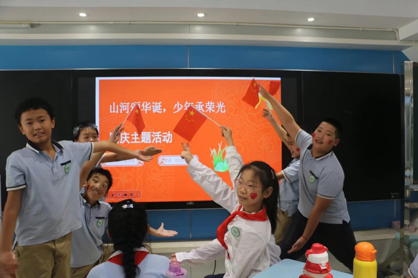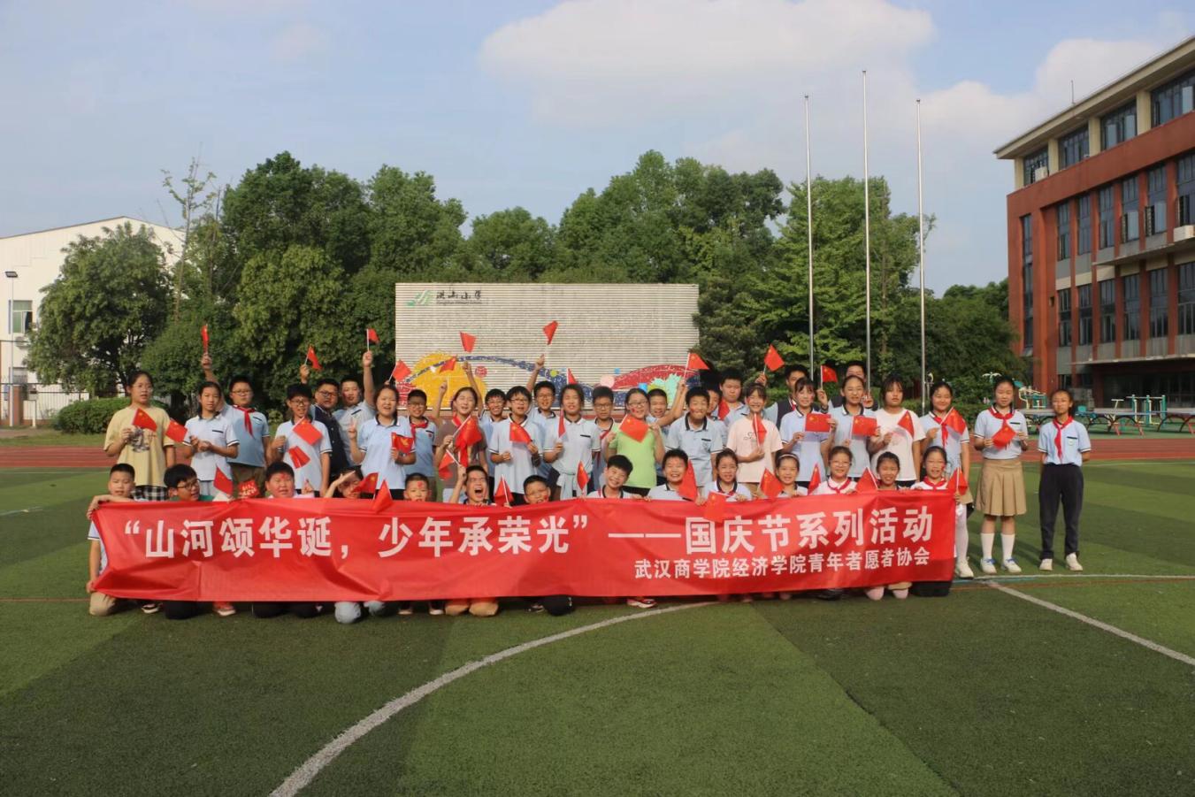 本网讯 秋风送爽,丹桂飘香,为弘扬爱国主义精神,庆祝祖国华诞,传递青春志愿力量,2025年9月28日,经济学院团学和青年志愿者协会组织了20名大学生志愿者在洪山小学开展了“山河颂华诞,少年承荣光”国庆志愿活动。